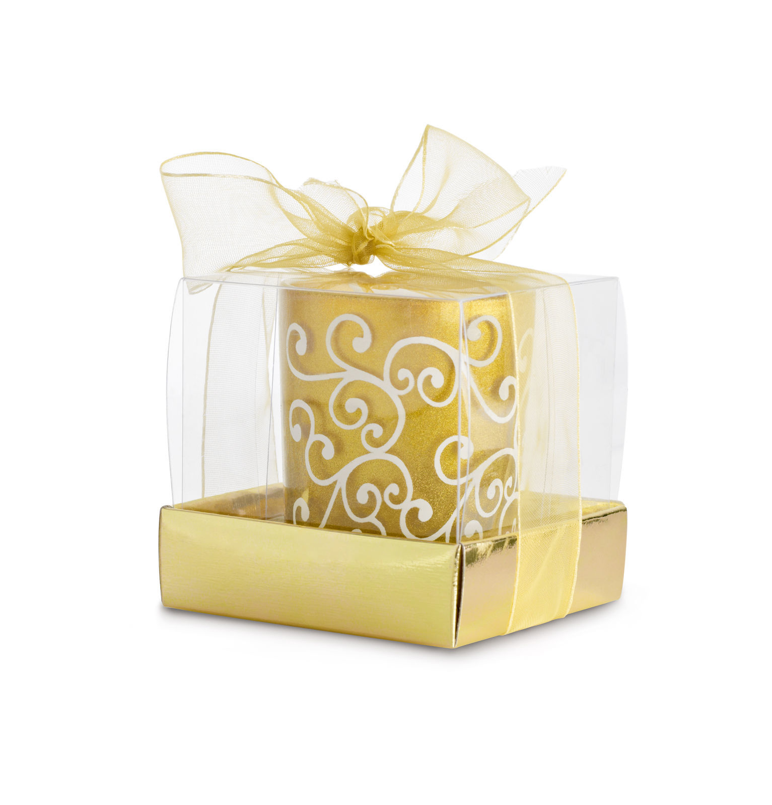 Présenté dans un étui individuel avec fenêtre transparente et noeud décoratif.