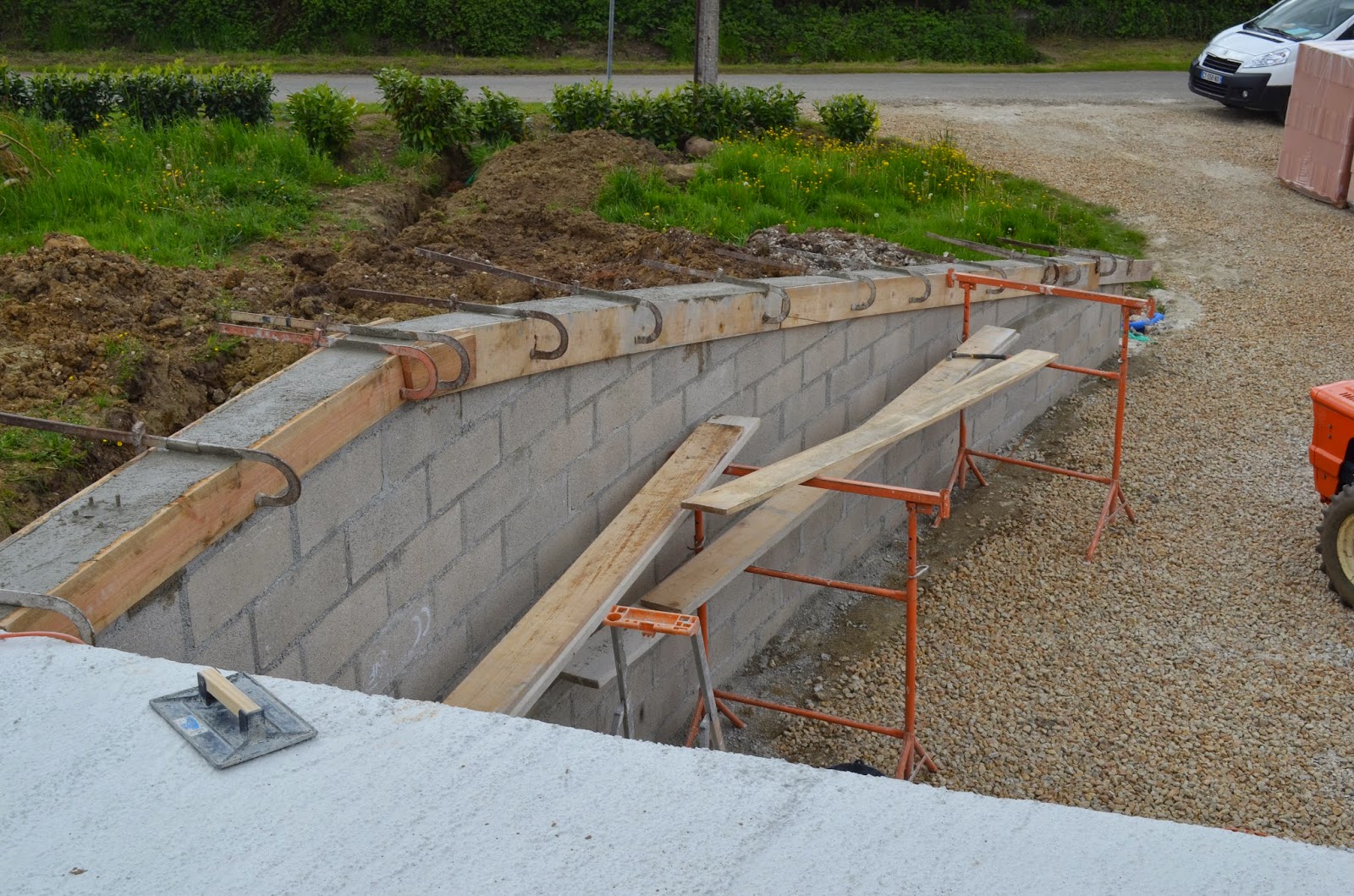 Déblai avec mur de soutènement.