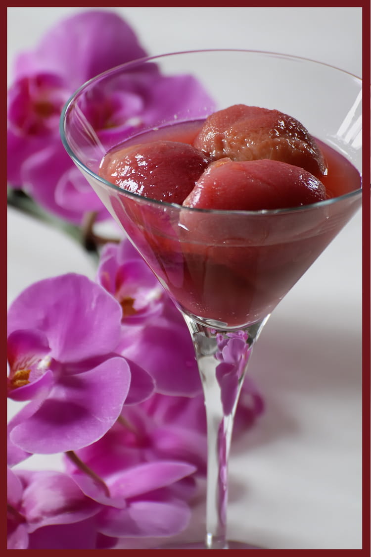 Les pêches de vigne, si petites et subtiles, sont arrivées sur les étals et se mettent en pots pour nous.